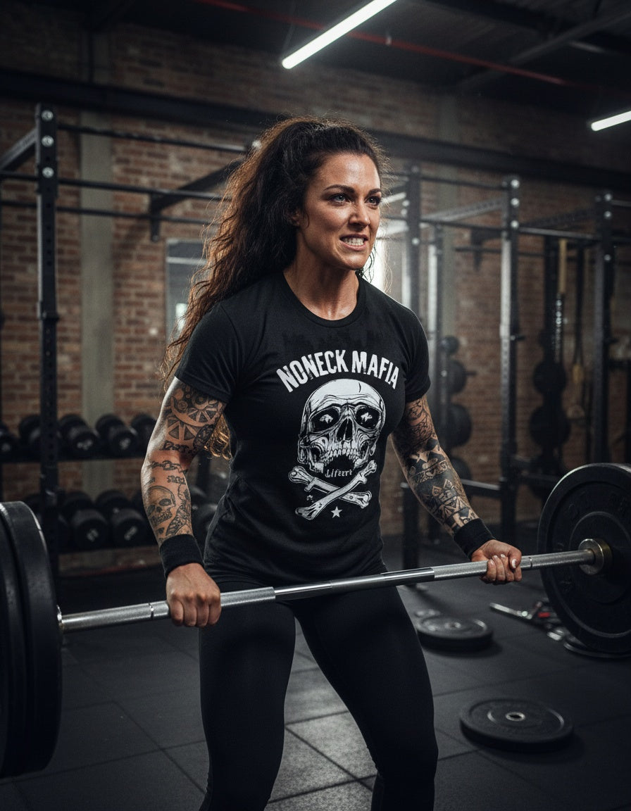 The No Neck Skull Tee delivers a bold statement with its striking design, perfectly complementing an aggressive and confident gym mindset. Crafted for comfort and durability, this shirt supports intense workouts while showcasing your fierce personality. Its sharp graphics and breathable fabric make it an ideal choice for anyone ready to push limits and stand out in the gym.
